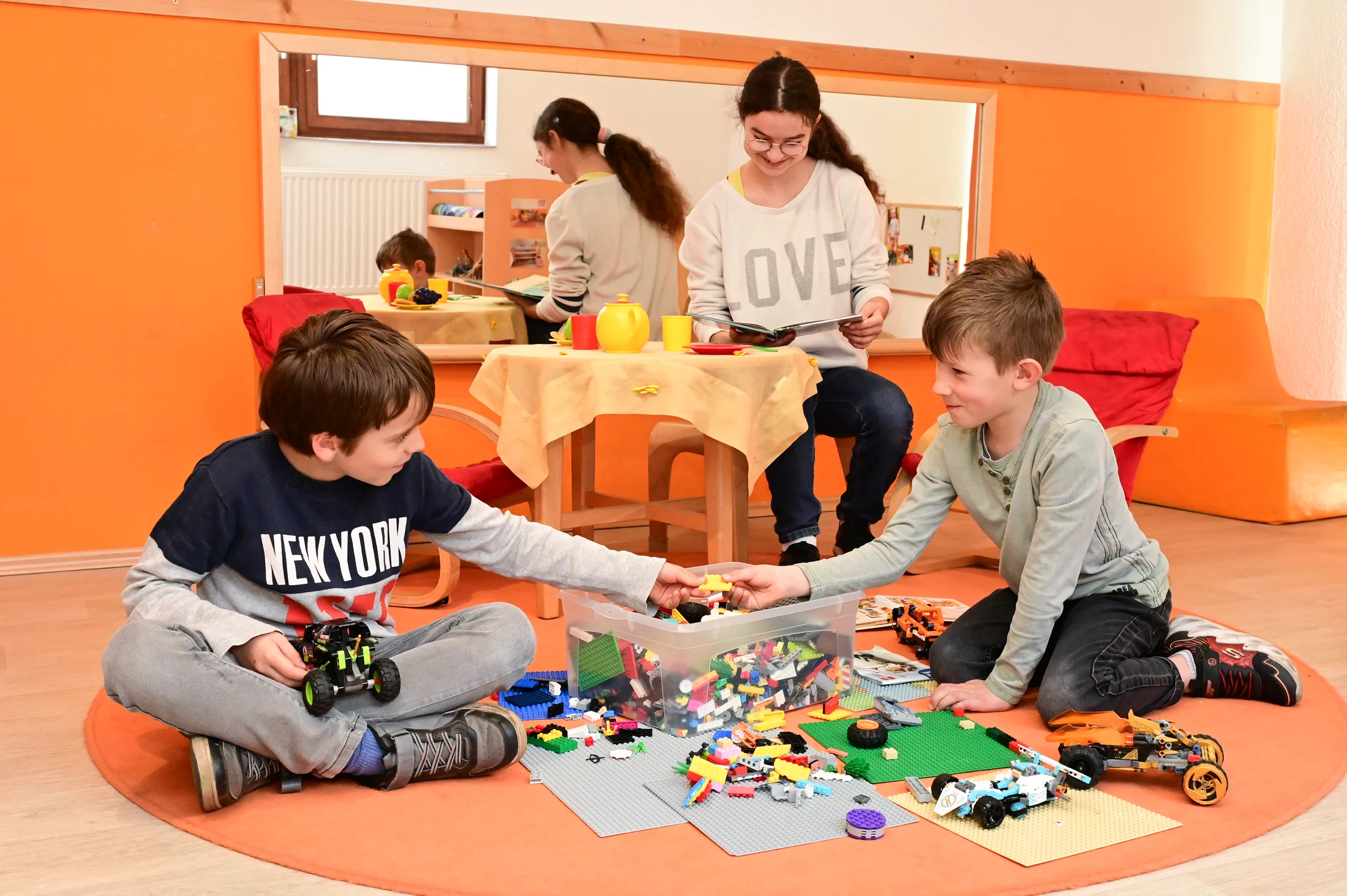 Hier treffen die Kinder täglich ihre Freunde und lernen im Miteinander das soziale Leben zu bewältigen. Die pädagogischen Fachkräfte stehen ihnen unterstützend zur Seite.