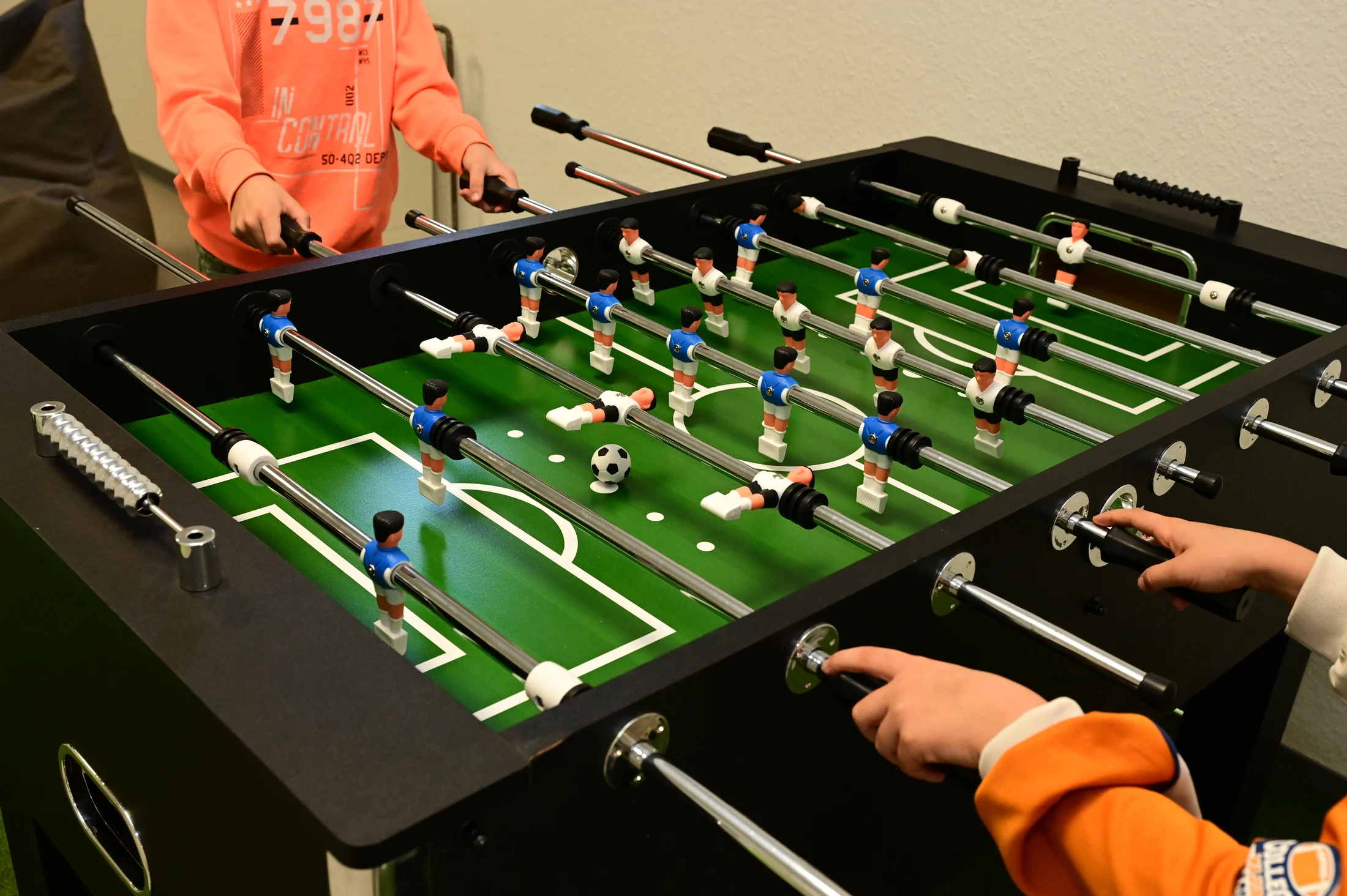 Soziales und Gesellschaft: kann zum Beispiel beim gemeinsamen Tischkickern oder Dartspielen (auf die Sicherheit ist geachtet) gestärkt werden.