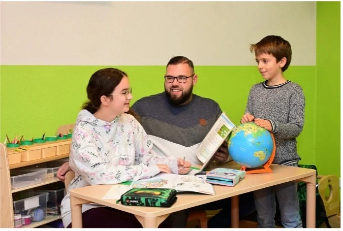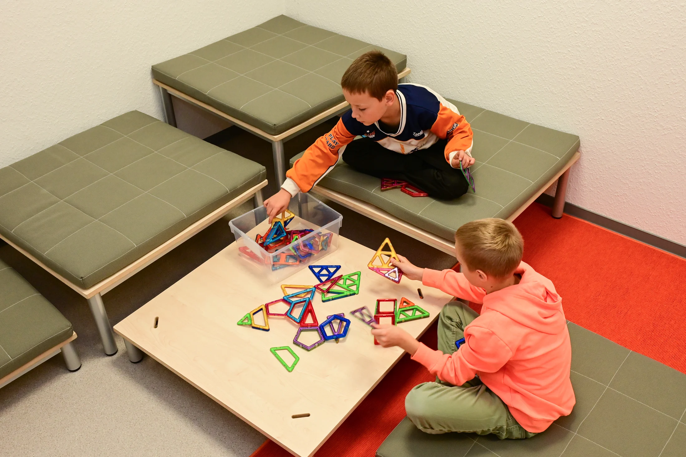- Das Hausaufgabenzimmer: mit Lernwerkstatt, Lernwabe und weiteren Lernmöglichkeiten.